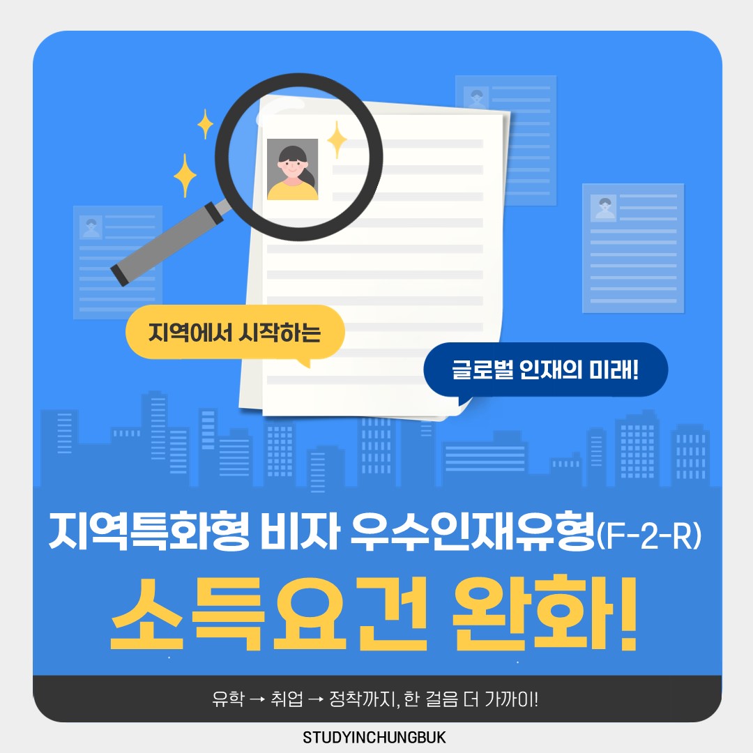 📣 우수인재 정착, 비자 소득요건 완화로 더 가까이! (지역특화형비자 우수인재유형 소득요건 완화)