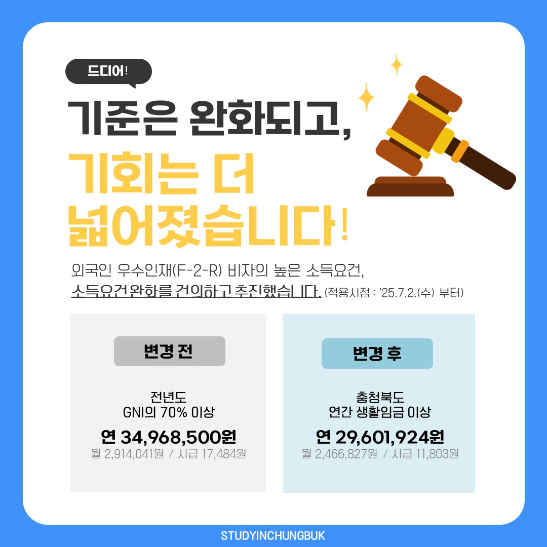 📣 우수인재 정착, 비자 소득요건 완화로 더 가까이! (지역특화형비자 우수인재유형 소득요건 완화)